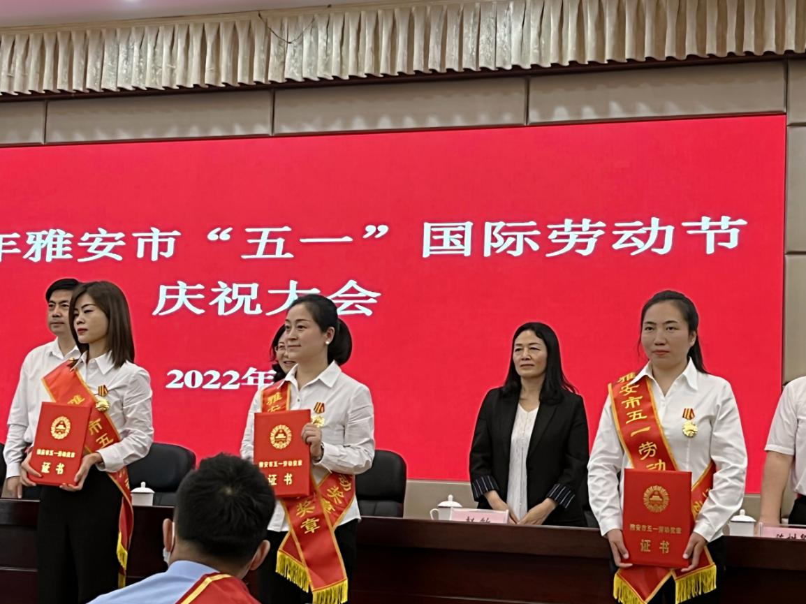 有爱爱党委副书记、艺悦公司执行董事殷丽华荣获“雅安市五一劳动奖章”,雅安悦花集酒店管理有限公司雅安蒙顶山花间堂·茶马司被命名为“雅安市工人先锋号”