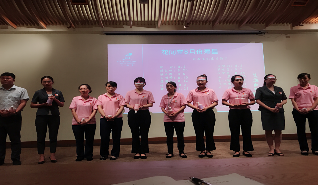 8月27日下午,雅安蜀天旅游公司花间堂酒店召开全体员工大会,酒店管理方派驻总经理杨中庚主持本次会议。会议上总经理杨中庚表示,坚决拥护蜀天旅游公司的各项任命以及会议精神,坚决执行。并向8月生日员工发放生日礼品,向寿星们表示祝贺,希望在未来的工作中,大家能更加热爱自己的岗位,热爱酒店,为公司的成长贡献自己的一份力量。通过对酒店2019年8月工作的回顾总结,激励鞭策全体员工要增强自信,振奋精神,发扬成绩,整改问题,并根据蜀天旅游公司下达的管理目标、经营指标,制定具体措施。2019年下半年酒店将面临新的挑战,在新的市场形势下,将以“效益、服务、成本、创新”为方针,全方位提升服务质量、加大销售力度、严格控制成本、创新产品、创新营销手段、提高经济效益,坚持不懈地抓好各项工作贯彻落实,进一步实现酒店质的飞跃。