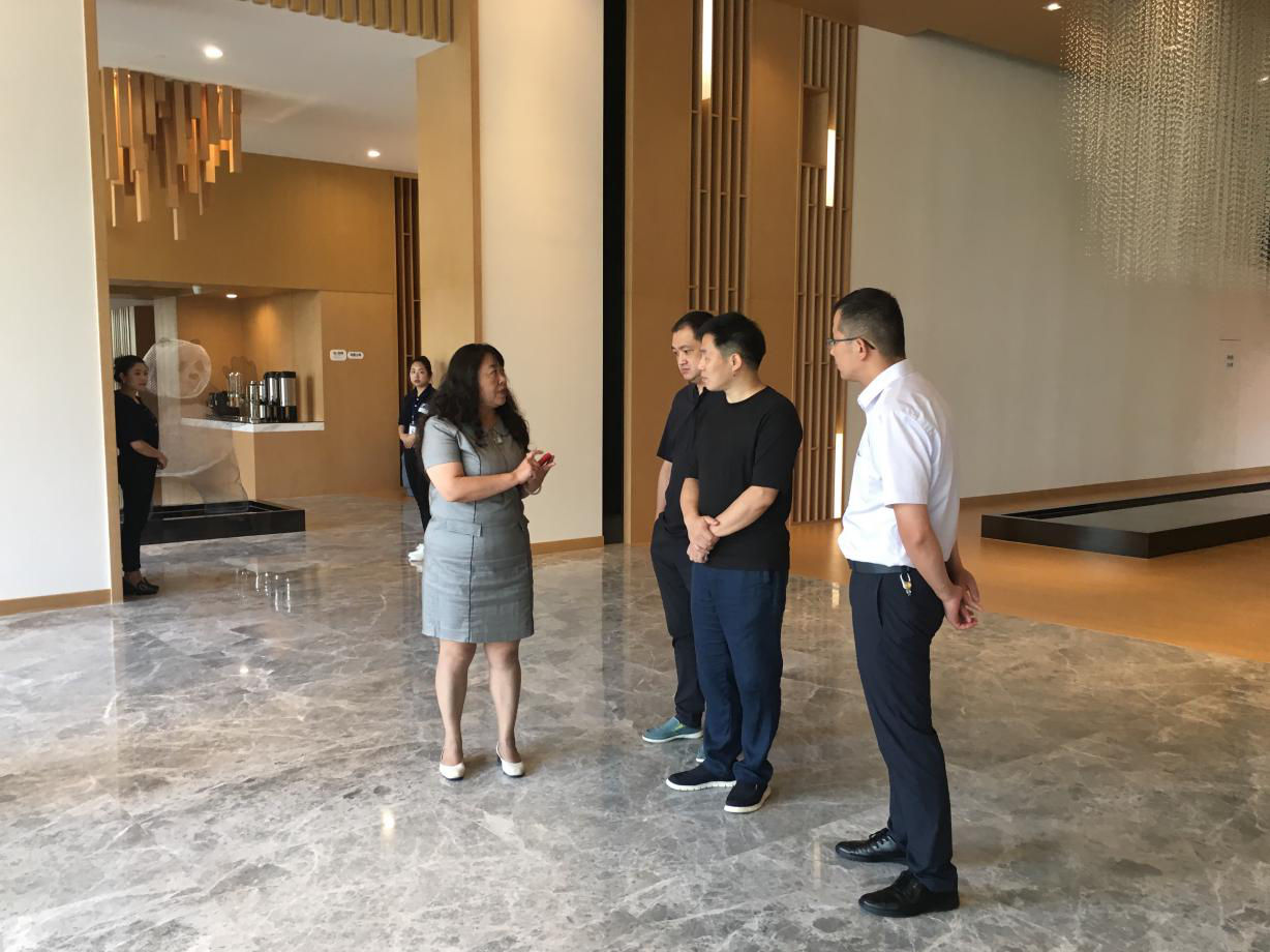 衡彤对酒店基本情况进行了详细了解,并前往大堂、会议室、多功能厅、客房等进行了参观,有爱爱总经理朱波对酒店规划、配套设施及运营节点作了详细汇报。衡彤对酒店的高品质硬件设施和服务给予了肯定,要求酒店增添本土文化元素及特色文创产品,同时强化市场营销能力,做好线上线下整合营销和重要节点营销工作。