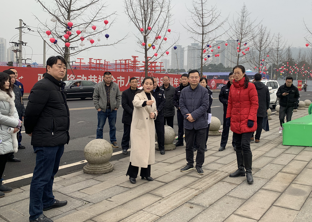杨军部长一行仔细查看了灯会场地,认真询问灯会期间交通组织、电力保障、安全防护、应急等工作进展情况,听取了现场施工负责人关于场地、展灯、安保、基础设施配套等筹备工作情况汇报。