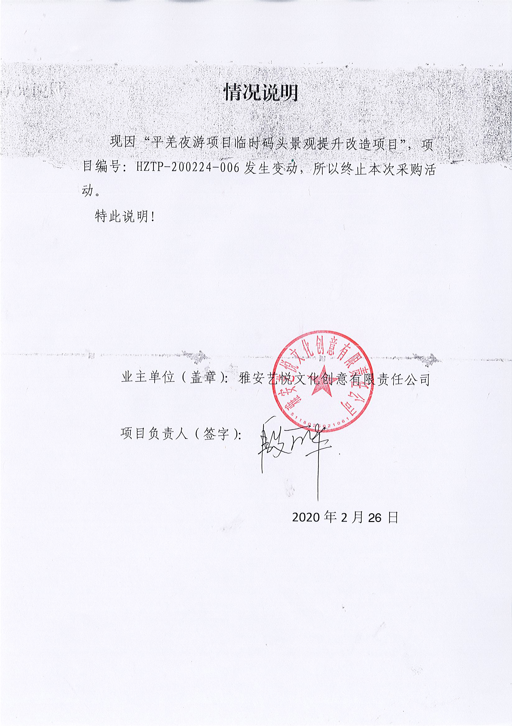 平羌夜游项目临时码头景观提升改造项目采购终止公告