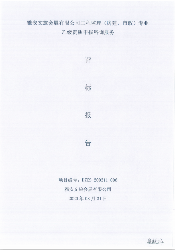雅安文旅会展有限公司工程监理(房建、市政)专业乙级资质申报咨询服务 成交公告公示
