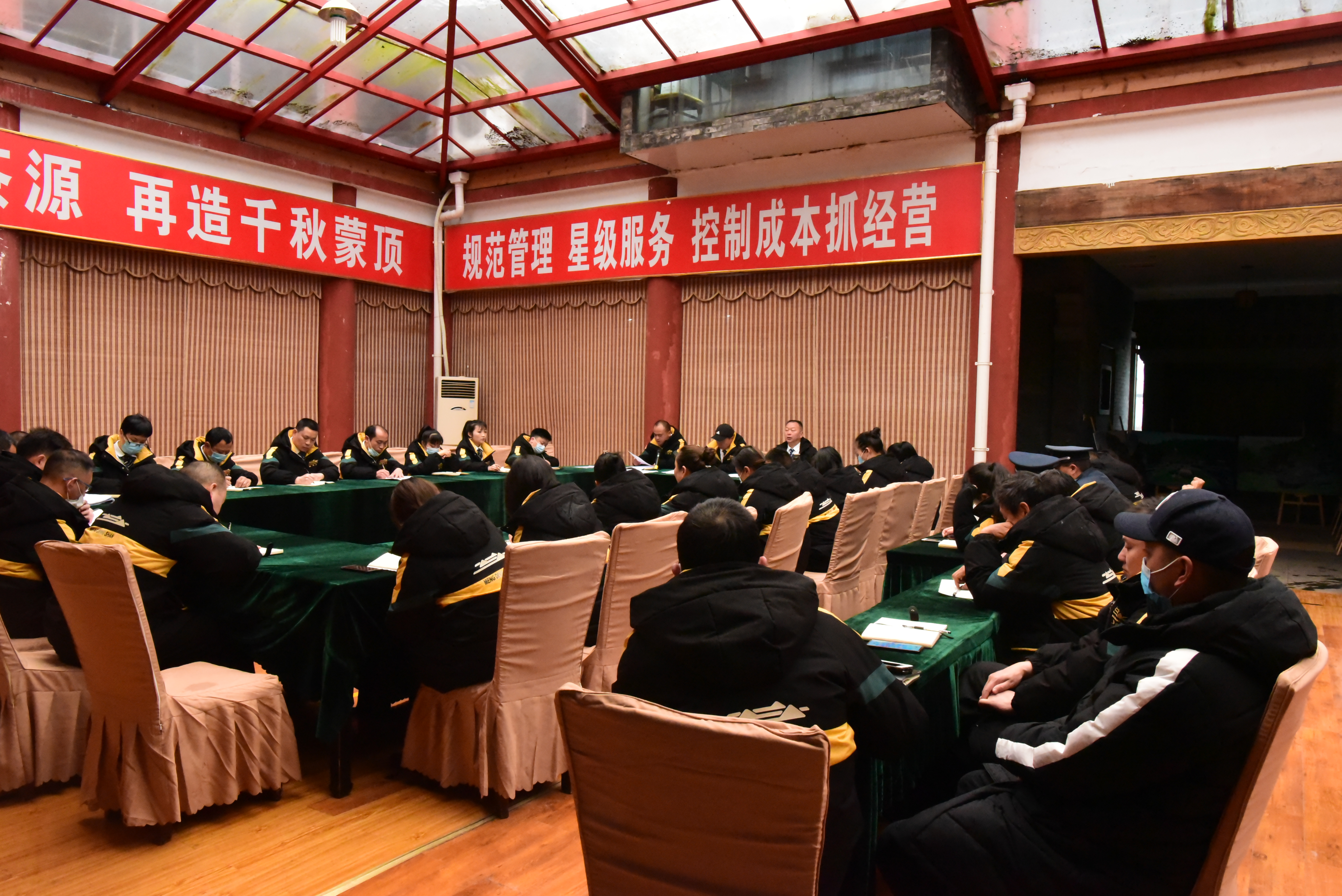 2020年4月3日上午9:30,蒙顶山旅游景区在茶源堂组织召开第二季度安全生产会,董事长张京、总经理卫建勇出席主持会议,公司主管以上人员参加。