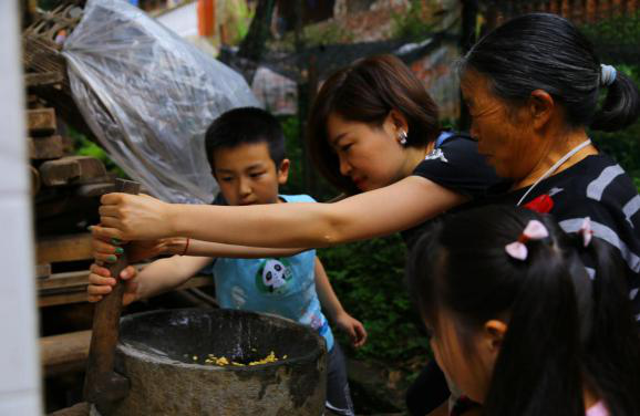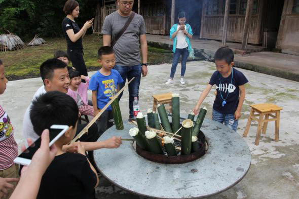 “碧螺谷亲子自然体验营”是一堂生动的自然研学课堂,父母带着孩子住农家院、吃农家饭、干农家活,走进山村、了解自然。一起调制雄黄酒,抹额黄、系五彩丝线、制香包祛毒驱毒,徒步螺山采草药、斗百草,感受端午节民间风俗。游客们还积极响应“爱心后备箱”工程,根据所需,买走贫困户家中的土鸡、土鸭、蜂蜜、雅鱼等农特产品,村民就地取材自制的竹筒花器、原木画片也成为“抢手货”。