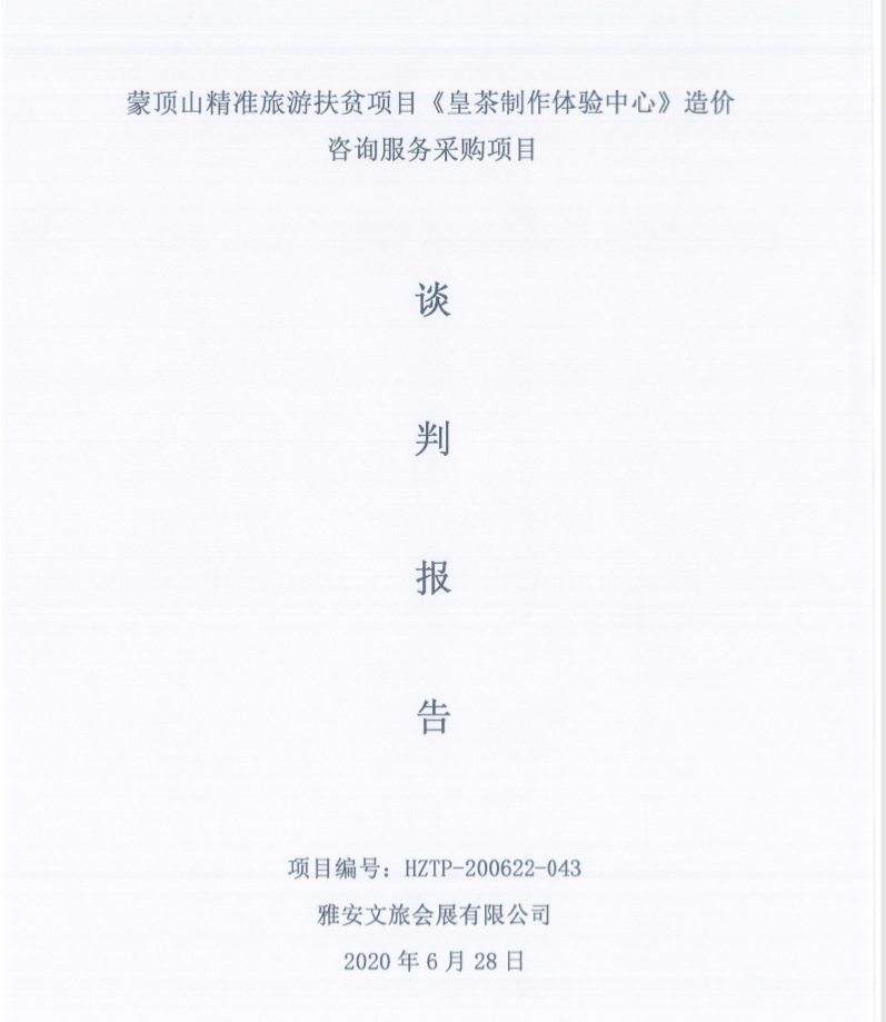 蒙顶山精准旅游扶贫项目《皇茶制作体验中心》造价资讯服务采购项目