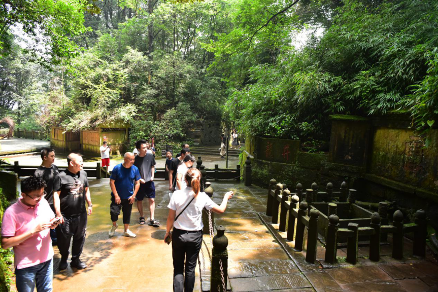 4日下午,旅行社一行走进蒙顶山景区,先后考察了蒙顶山景区甘露井、皇茶园等茶文化历史遗迹,欣赏了蒙顶山非遗传承龙行十八式茶技及天风十二品茶艺并在蒙顶山天盖寺皇茶楼就“名山旅游发展及如何吸引旅行社组团到名山”进行座谈交流。