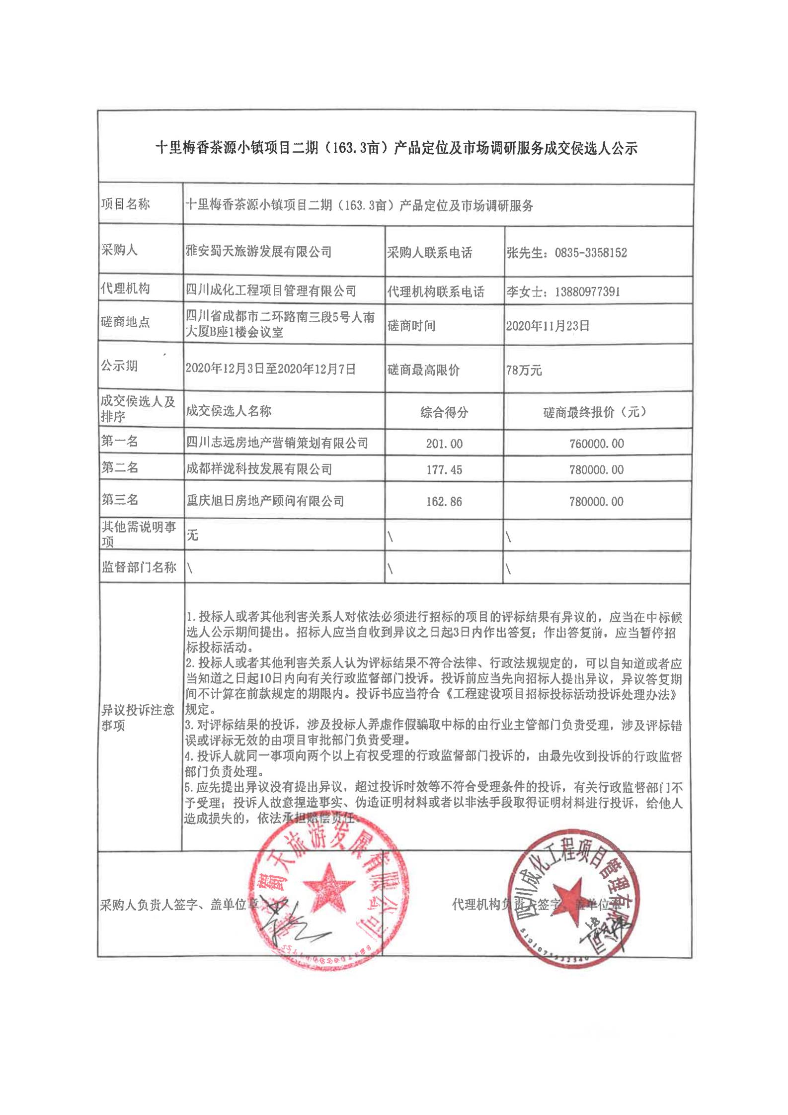 十里梅香茶源小镇项目二期(163.3亩)产品定位及市场调研服务成交侯选人公示