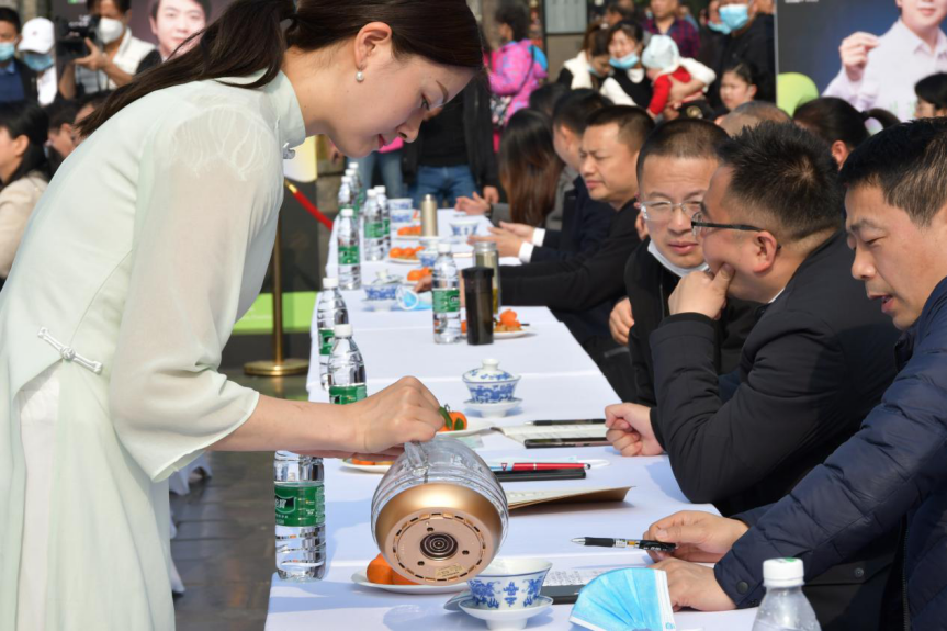 此次活动正式拉开了“第十七届蒙顶山茶文化节”序幕,吸引约20万游客前来参观、品鉴。活动现场,由皇茶公司提供的高山有机甘露作为此次新闻发布会官方接待用茶接待八方来客,与京东集团西南物流公司联手策划的“朕的茶室”快闪打卡点,引现场游客争相打卡拍照,成为流量网红“IP”。