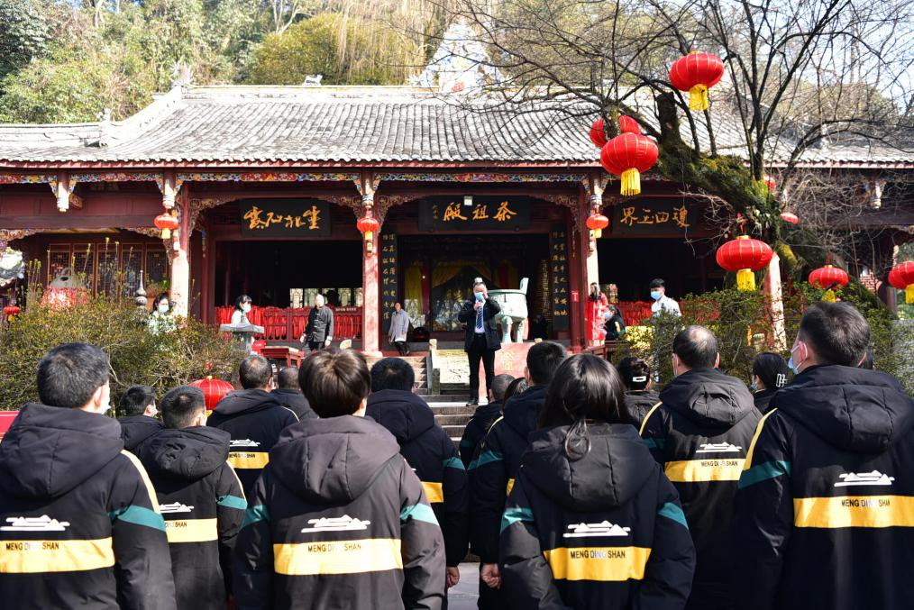三、推广民俗,传统文化添氛围。正月初一,为感恩茶祖吴理真为人类做的贡献,蒙顶山景区举行了开年第一场“拜茶祖·祈大福”茶祖祭拜仪式,诵读祭文,敬拜茶祖,行作揖礼,敬献蒙顶皇茶,去掉昔日进香的流程,蒙顶山景区也将此次的“茶祖祭拜”仪式感做到十足,令不少游客为之驻足。为营造节日氛围,蒙顶山花间堂·茶马司酒店还开展了新年剪纸等传统非遗活动,以及古风发簪制作、陶罐涂色、毛毡挂件制作活动,受到入住游客的欢迎。