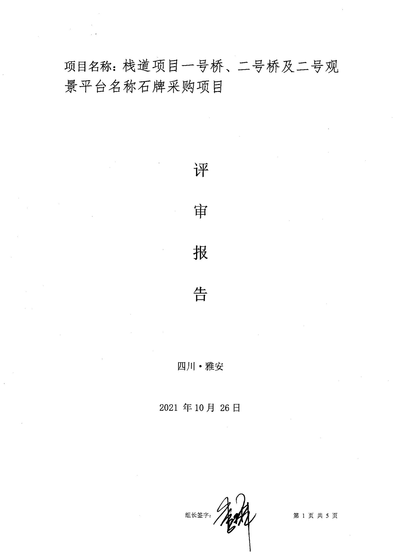 蒙顶山栈道项目一号桥、二号桥及二号观景平台名称石牌采购项目
