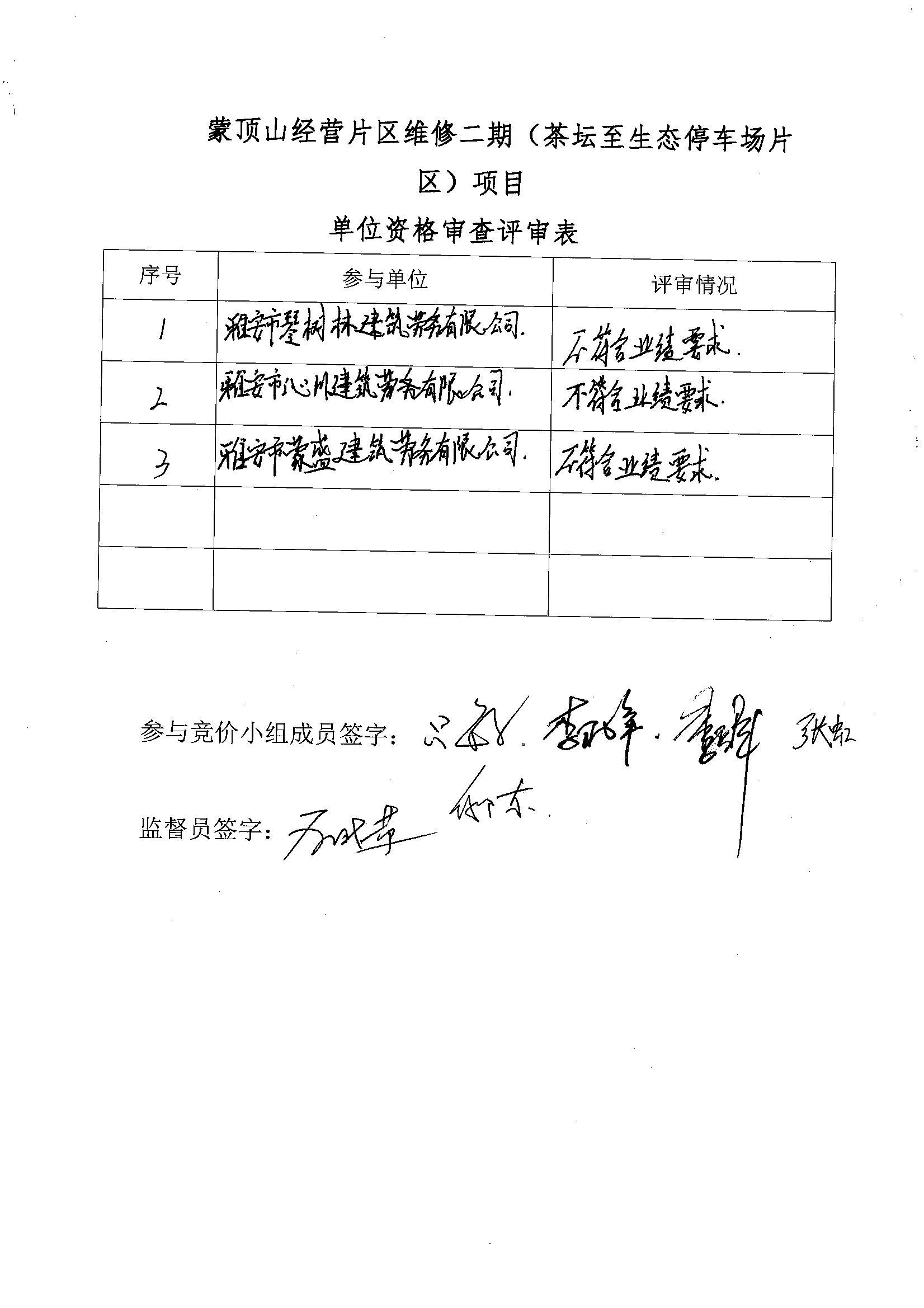 流标蒙顶山经营片区维修二期(茶坛至生态停车场片区)项目流标公告