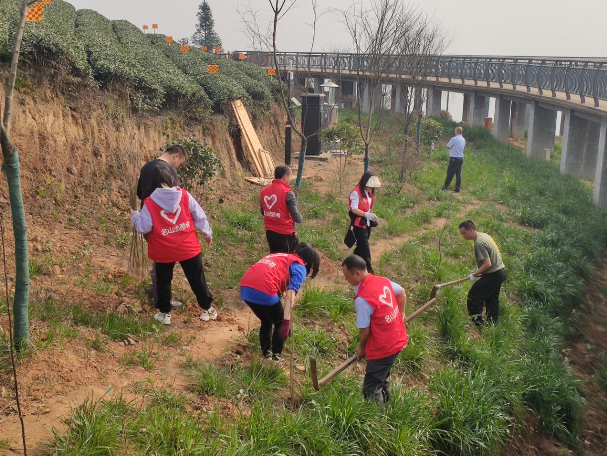 3月11日上午,第44个植树节来临之际,蒙顶山景区组织党员干部共30余人开展义务植树活动,在栈道沿途栽种观赏型花木1000余株。