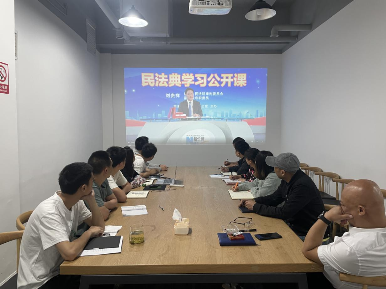 继续推动贯彻法律精神,让民法典融入工作中。我司将不定期通过座谈会、视频学习、文章学习等方式,让民法典教育常态化、规范化、行为化,增强员工守法、知法、懂法的自觉性,把学习到的法律精神运用到工作中,为建设和谐法治氛围添砖加瓦。