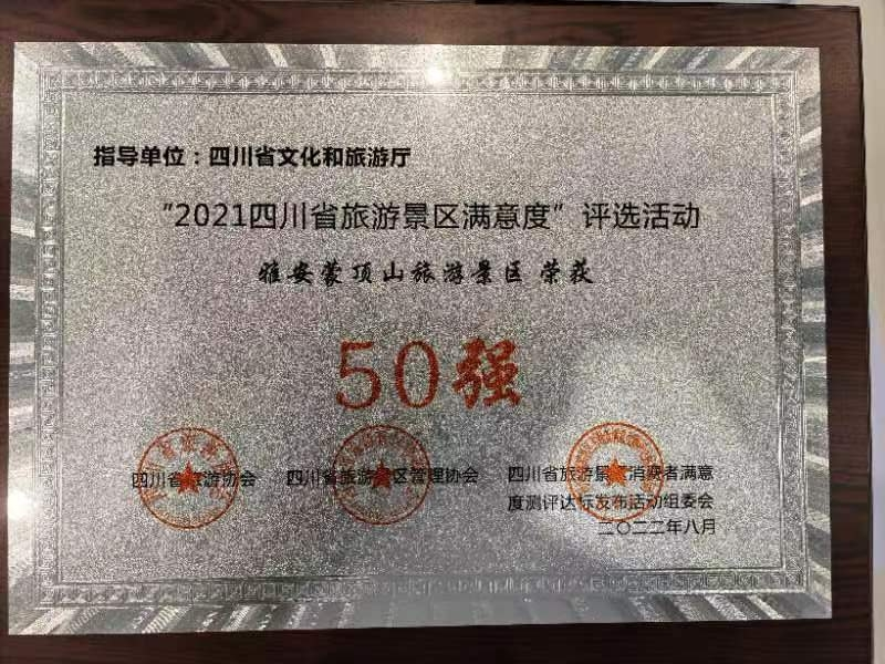 蒙顶山景区荣获 “2021四川省旅游景区满意度”50强