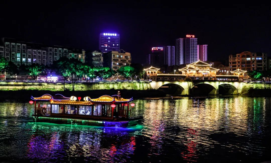 于平羌渡口,乘“平羌号”夜游青衣江上,邂逅“平羌夜渡沉秋水”,探寻古渡记忆。青衣江自古通竹筏、木排、木船,船运兴盛,1952年雅安大桥建造、1987年雅安北门大桥通车,现代交通网便利通达,古渡消失,“雅安古八景”之一平羌渡成为雅安人民永远的记忆。