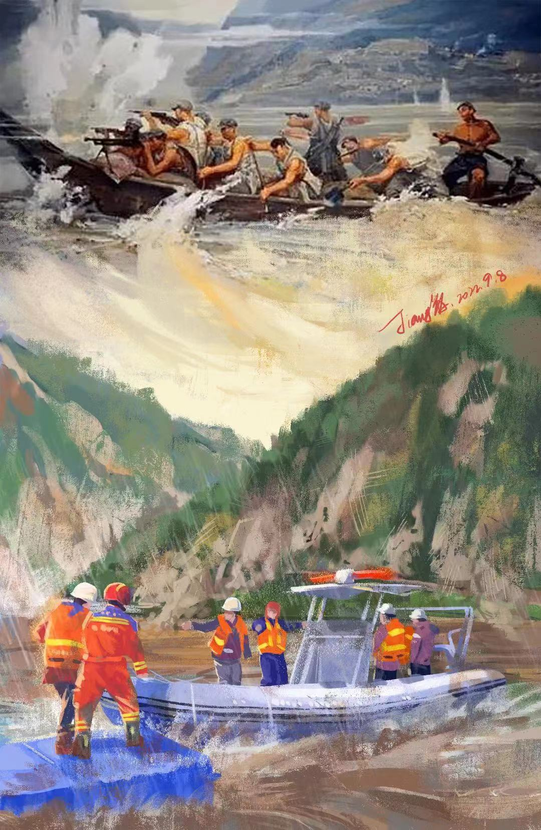 助力抗震救灾。在“9·5”泸定地震发生后,文旅集团组织的党员救援队伍第一时间赶赴灾区,彩绘团队以艺术发声,借文艺的力量鼓舞着前线救援队伍和广大人民,创作出《跨越87年的同框》插画作品,记录下抢险救援的感人瞬间,表达了灾区人民对全国救援的感恩之情,插画作品在中央省市平台广泛传播,浏览量达千万次。