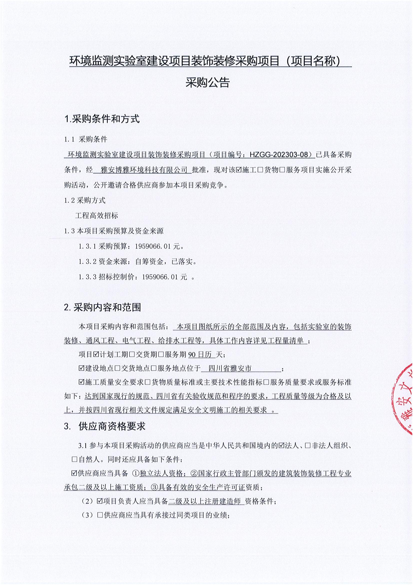 环境监测实验室建设项目装饰装修采购项目(项目名称) 采购公告