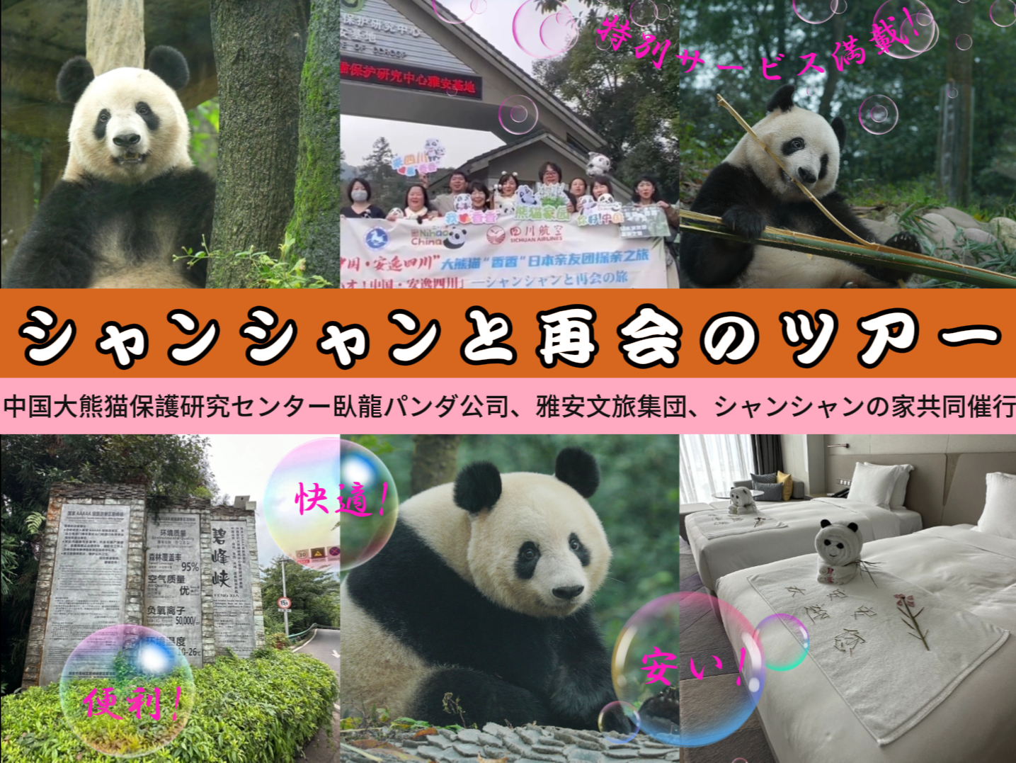 二是共推“看香香 游天府”定制旅游。双方签署定制旅游合作协议,本着平等自愿原则,各自发挥优势,就“看香香 游天府”特色定制旅游项目开展合作运营,引导日本的“铁杆粉丝”们组团到雅安看香香,以独家资源和优质服务亮出“在上野排队看不清香香,到雅安实现香香全自由”的金字招牌。持续开展大熊猫文化传播活动,持续开发特色熊猫文化体验项目,大力推动两国青少年文化交流互动。