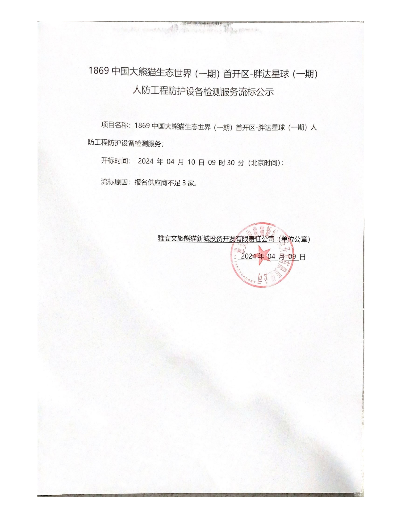 雅安文旅熊猫新城投资开发有限责任公司
