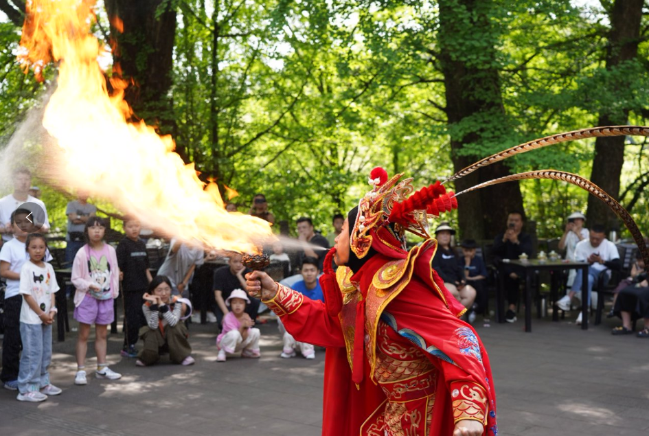 文化体验深度沉浸。蒙顶山景区延续“来蒙顶,就徒一乐”徒步第三季活动,吸引徒步爱好者深度参与,5月2日、5月3日连续两天突破蒙顶山单日入园人次最高纪录,非遗茶技展演“龙行十八式”“天风十二品”以及川剧变脸等再现雅安底蕴;花间堂酒店推出“茶道香道体验”“手工制茶课堂”;智选假日酒店保持稳定高入住率,皇冠假日酒店推出小龙虾自助餐特色餐饮;《熊猫归来》大型史诗剧连演8场,融合巨型光影特效与立体舞台机械,“跟着演出去旅行”成为来雅必看的文化盛宴。
