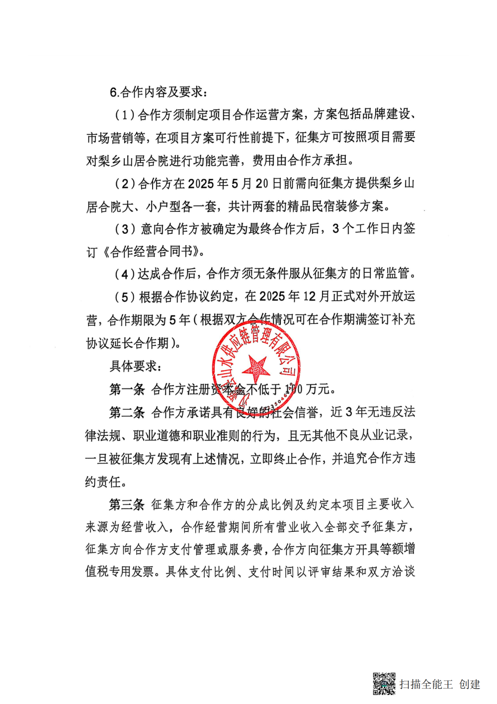 汉源县山水供应链管理有限公司关于公开征集汉源县九襄镇花海果乡乡村振兴旅游配套示范项目(梨乡山居)合院精品民宿运营管理(含前期装修设计方案)合作单位的公告