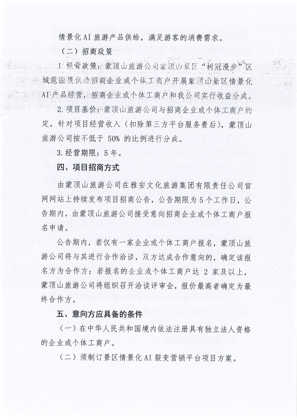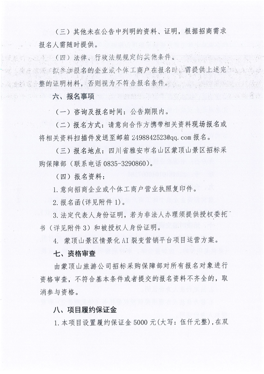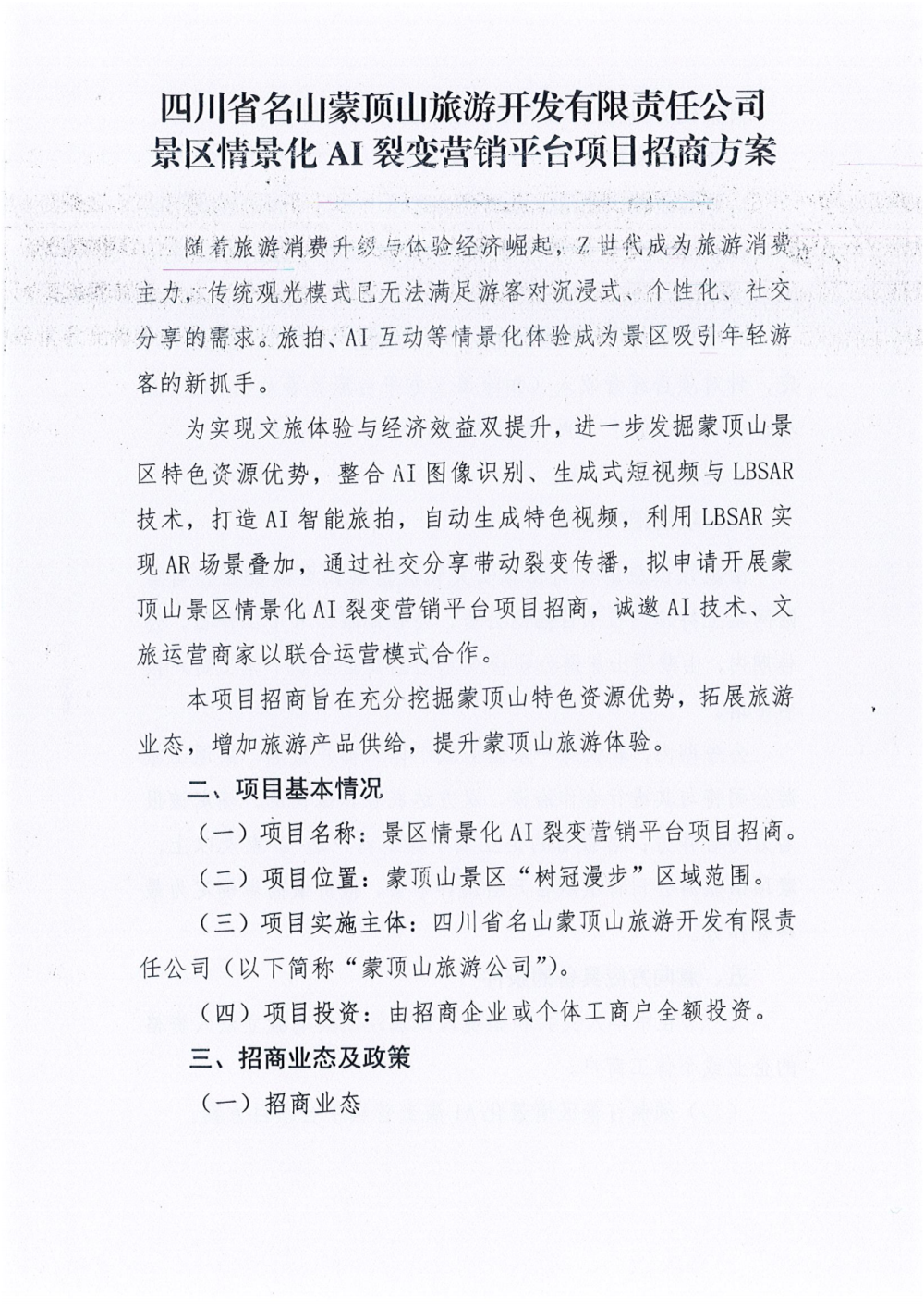 四川省名山蒙顶山旅游开发有限责任公司 景区情景化AI裂变营销平台项目招商