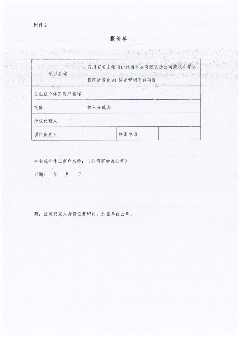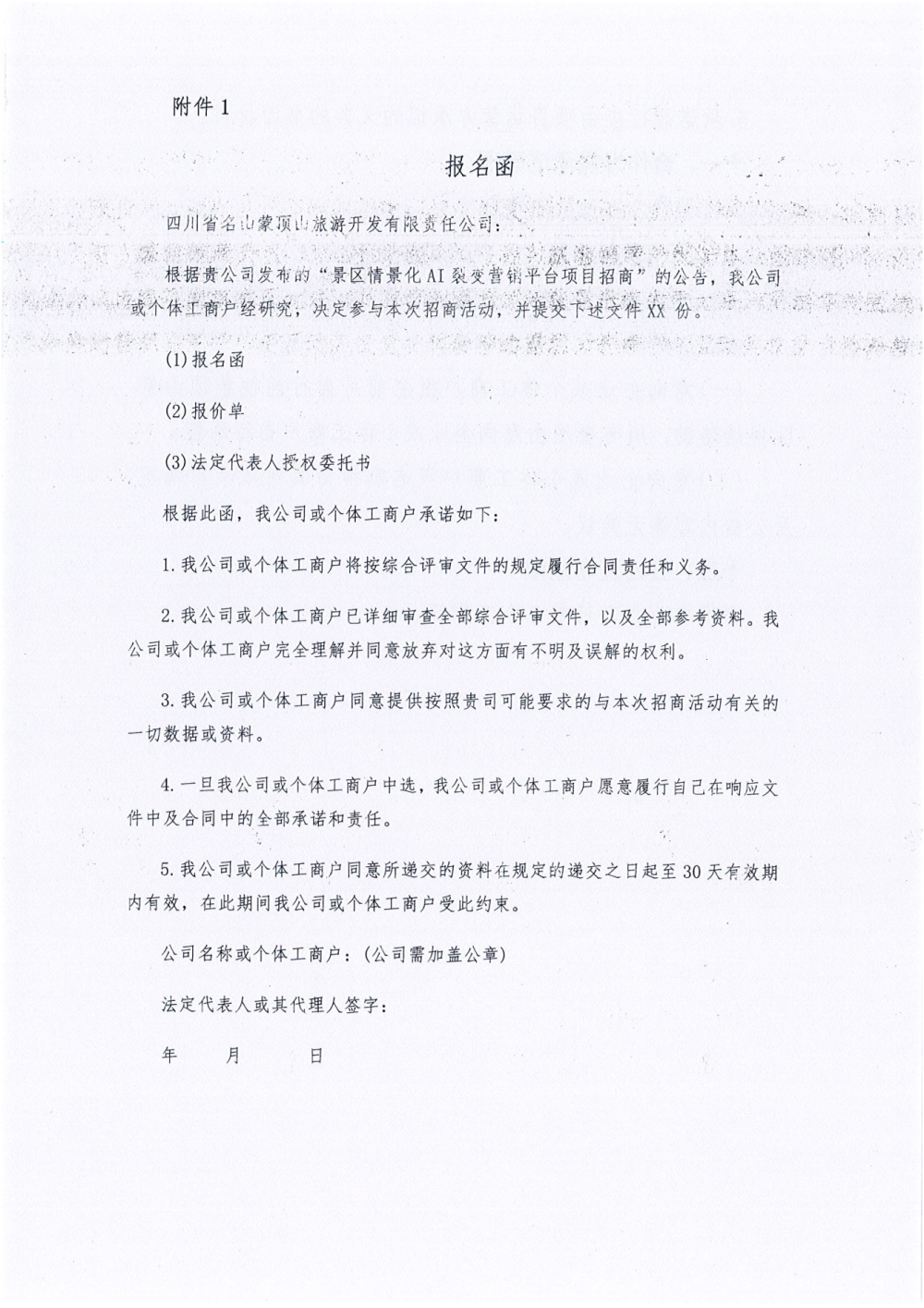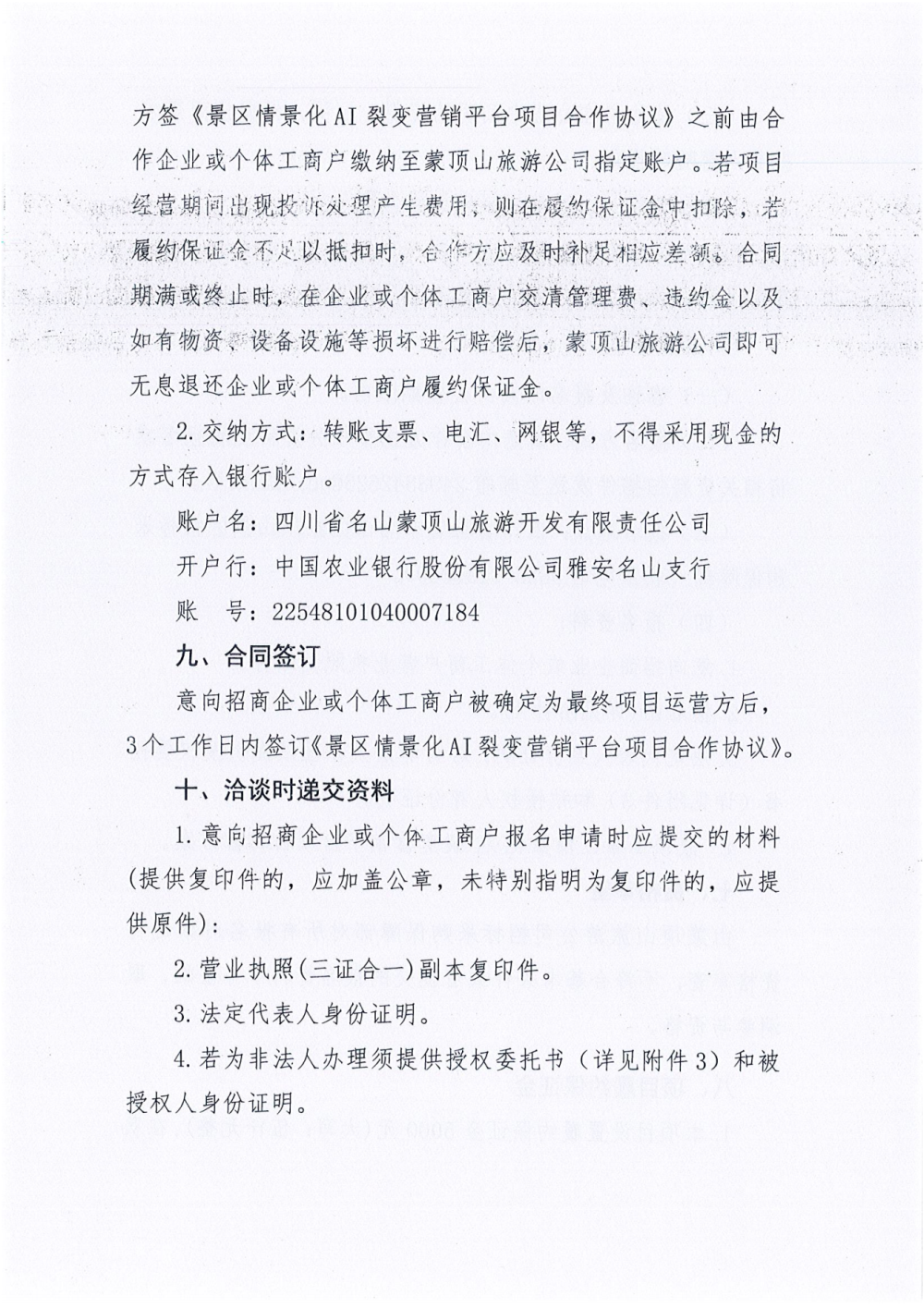 四川省名山蒙顶山旅游开发有限责任公司 景区情景化AI裂变营销平台项目招商