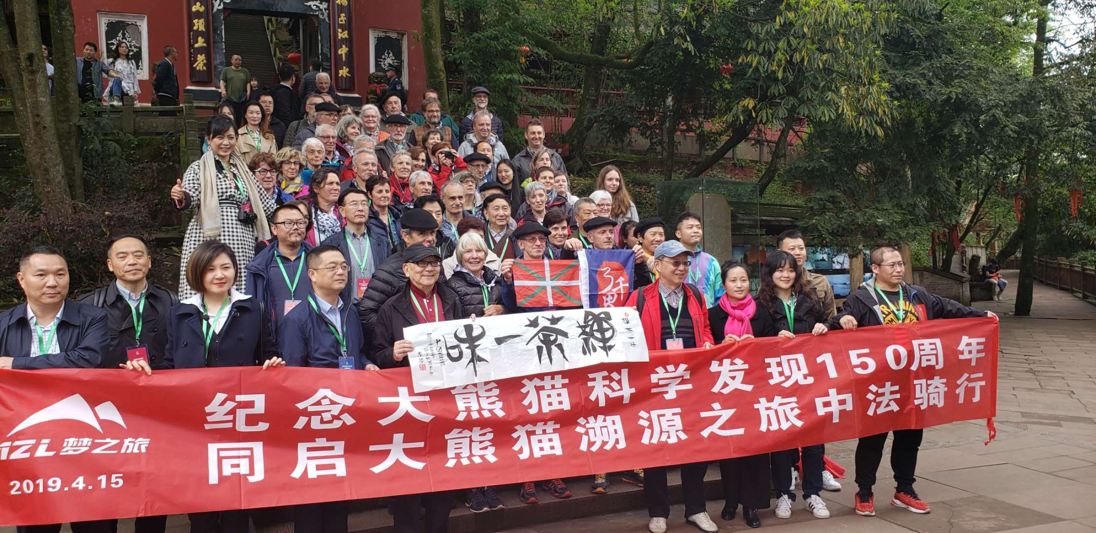 4月14日,法国博物学家阿尔芒·戴维在法国埃斯佩莱特市的48名戴维家族后人,由当地市长带队,不远万里来到雅安,与数十名大熊猫文化专家一起展开为期3天的“纪念大熊猫科学发现150周年·大熊猫溯源之旅”。