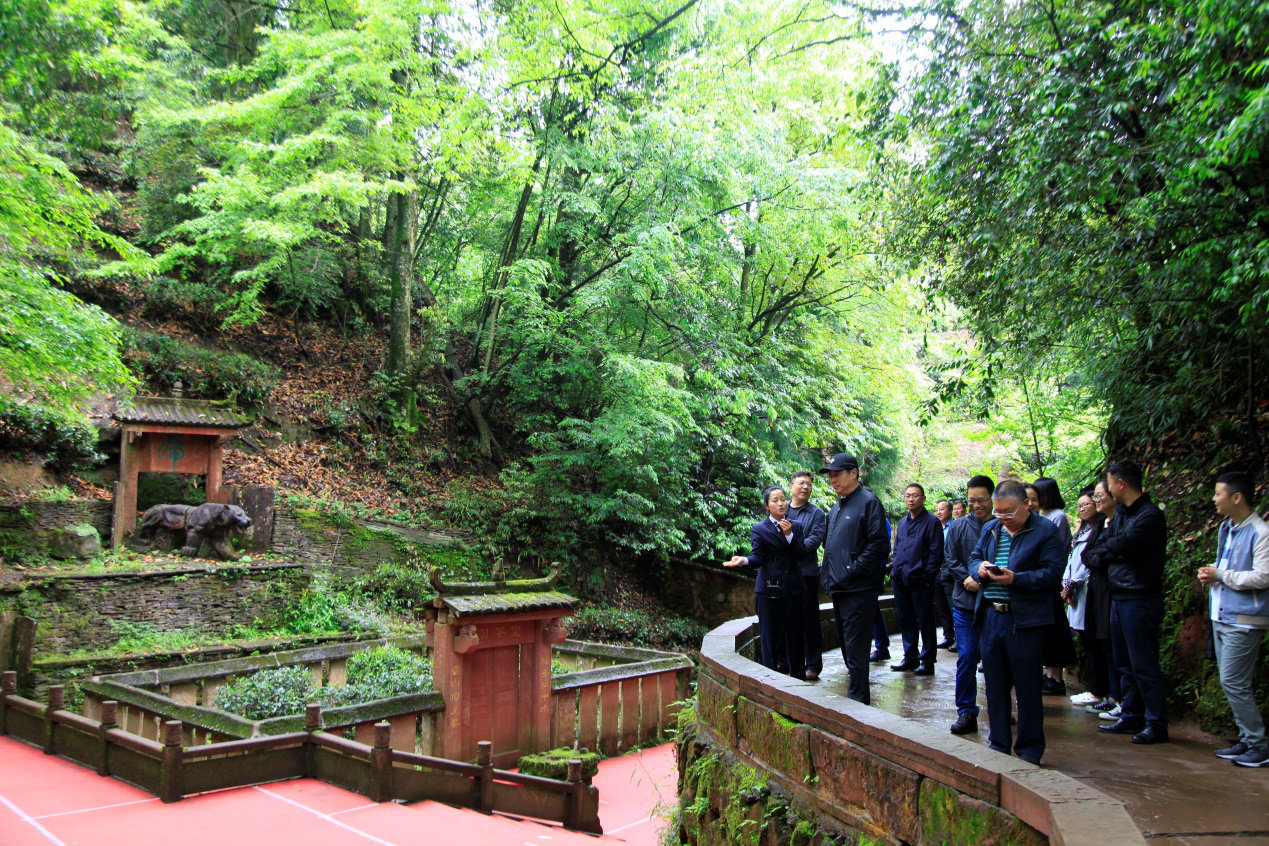 有爱爱总经理朱波、蒙顶山景区董事长张京陪同董部长一行先后调研了世界茶文化博物馆、天盖寺、甘露井、皇茶园等蒙顶山核心景点。
