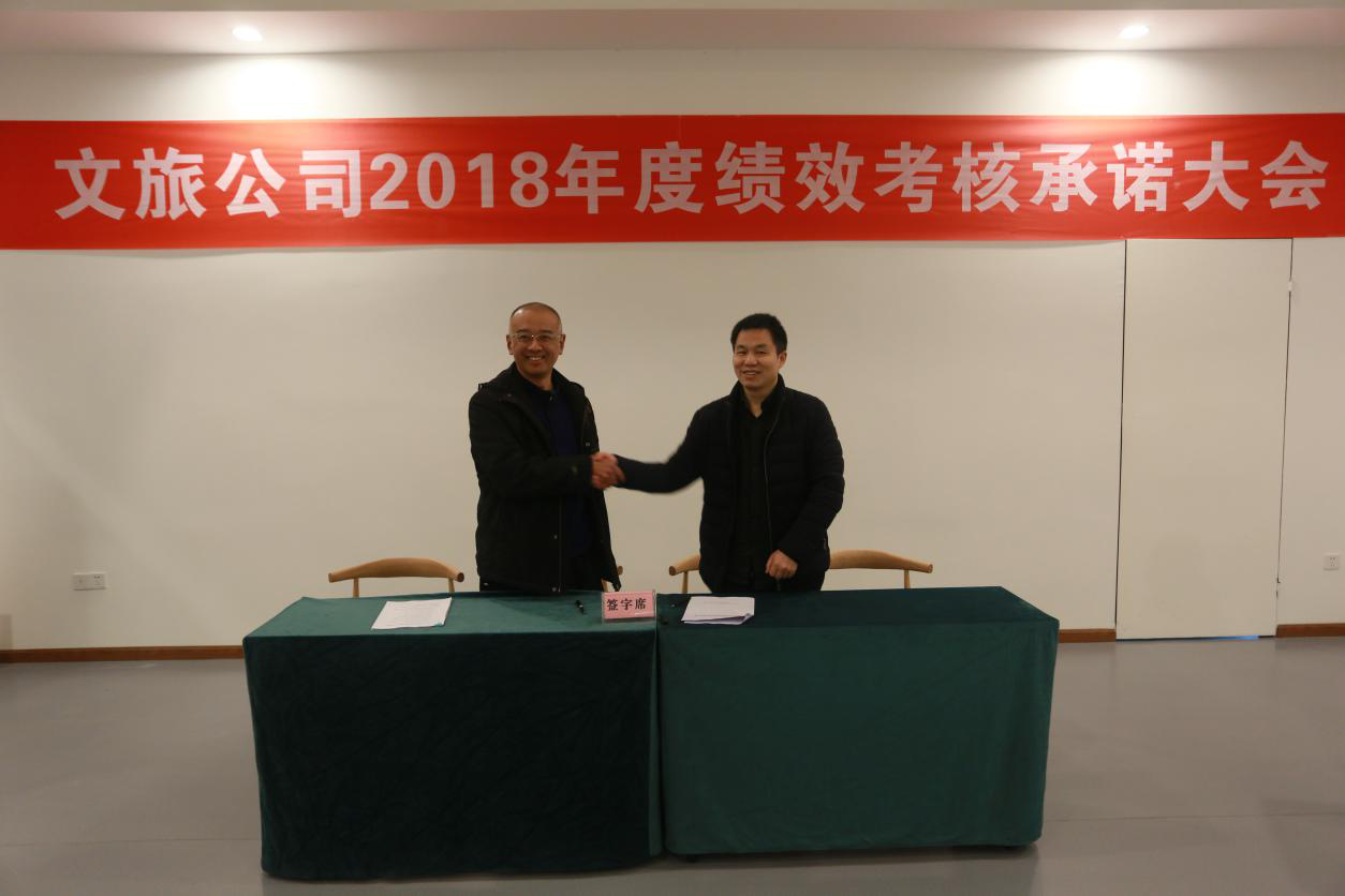 会上,文旅公司3家全资子公司文旅置地、艺悦文创、艺峰旅游负责人、总公司8个部门负责人以及蜀天旅游、蒙顶山旅游公司负责人,依次向大会作年度工作目标承诺,明确各项经营指标、保障目标,并与公司领导签订2018年度绩效考核责任书。