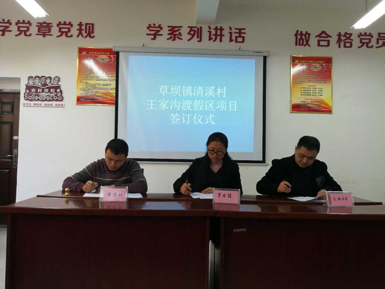 3月6日上午,雅安文旅公司全资子公司文旅置地公司与草坝镇人民政府、草坝镇清溪村村民委员会负责人,就王家沟精品民宿项目签订了三方合作框架协议。