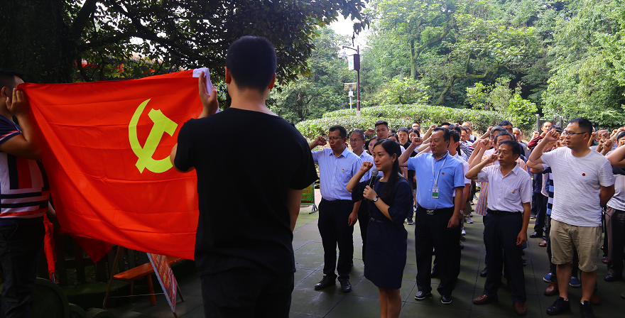 活动中,城乡党员步行攀登蒙顶山,寻访古茶树、探访甘露井、浏览皇茶园、拜谒茶神,了解家乡、认识雅安。在红军百丈关战役纪念馆外,由文旅公司支部书记殷丽华带领90多名党员重温入党誓词,党员干部铿锵的语调,诚挚的心声,既是庄严的承诺,也是每一名党员的奋斗目标。