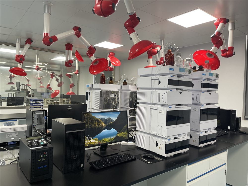 现有三个基地工厂各拥有实验分析楼、标准实验室、分析室。分析设备有高效液相色谱仪、气相色谱仪、紫外分光光度计、旋光仪等。有力保证了产品的生产技术先进性和品质的优越性。